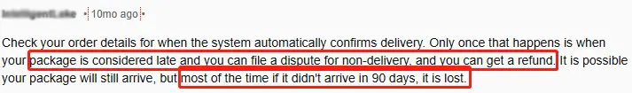 Or sellers just tell them to wait for more time or extend delivery time directly, such as changing 60 to 90 days. Under such circumstances, customers will choose to get a refund on the AliExpress platform.