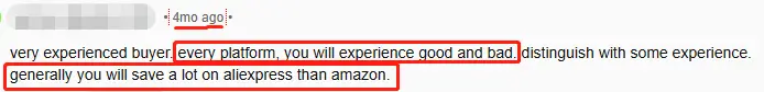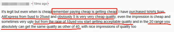 But there is another situation: you think the item is inferior or fake just as it fails to meet your high expectations. Especially with branded items on AliExpress, like the ā€œlatestā€ pair of Nike shoes for $30 with free shipping, it’s clear they won’t be as good as the original ones. As long as the quality aligns with a $30 value, it’s acceptable. Here are 2 AliExpress users’ comments.