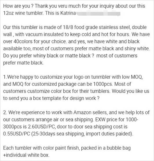 A good supplier will carefully consider your needs, provide practical solutions, correct your misconceptions, and make it clear what you’re spending on, giving you a strong sense of security. However, a poor response will generally deliver nothing, due to a lack of product knowledge, and also reflects poor communication skills, as shown in the example below.